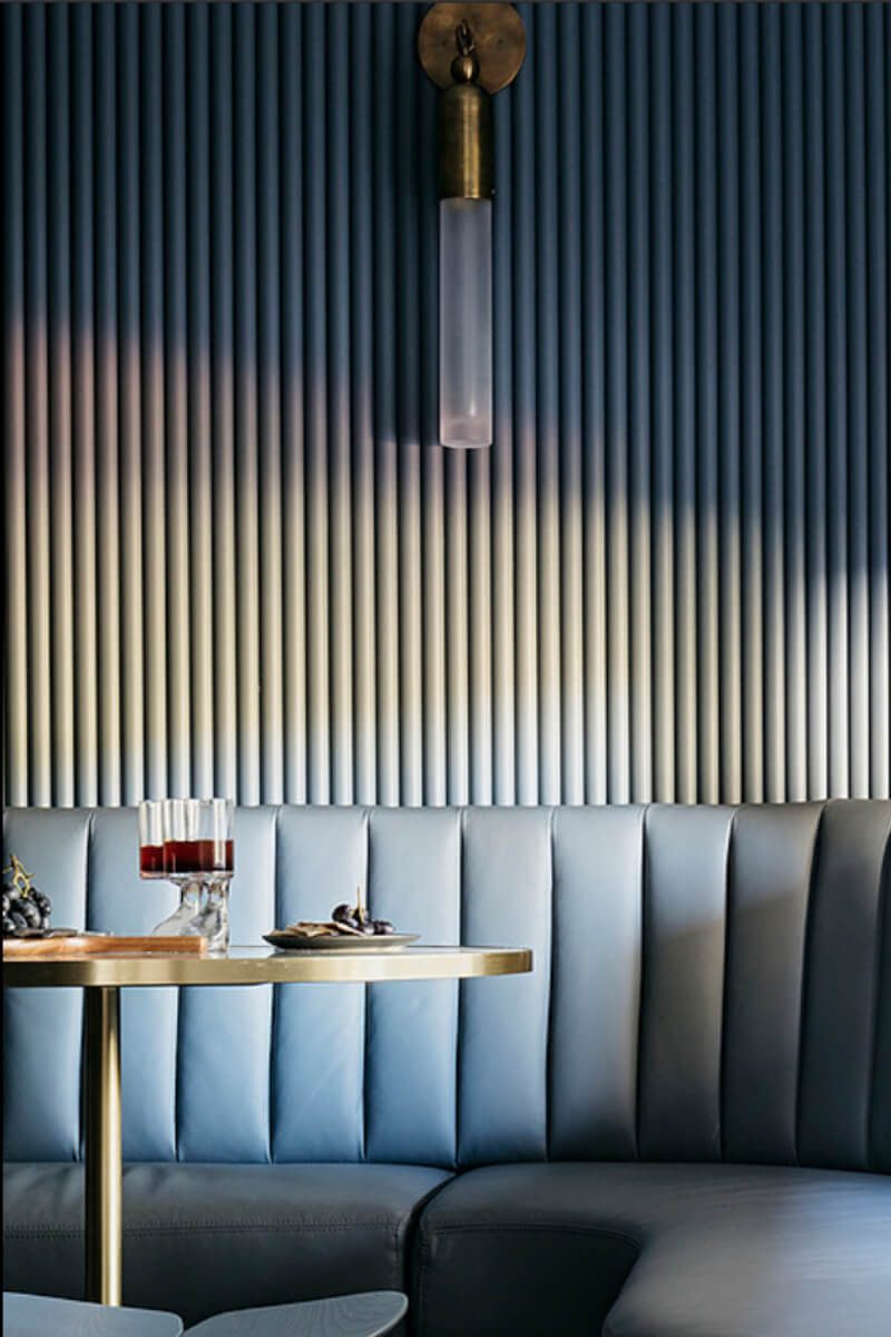 Making an impact indoors and out are two classic architectural devices: fluting & reeding. The application of concave grooves (fluting) and convex ridges (reeding) to surfaces has experienced a modern resurgence, interpreted indoors in materials such a leather, glass, timber, marble, MDF and bamboo.