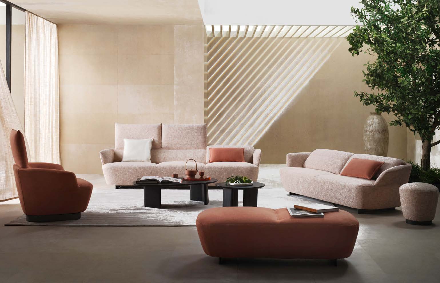 The sinuous curves of the Deep fabric 3-seater sofa in Dove, from Natuzzi,