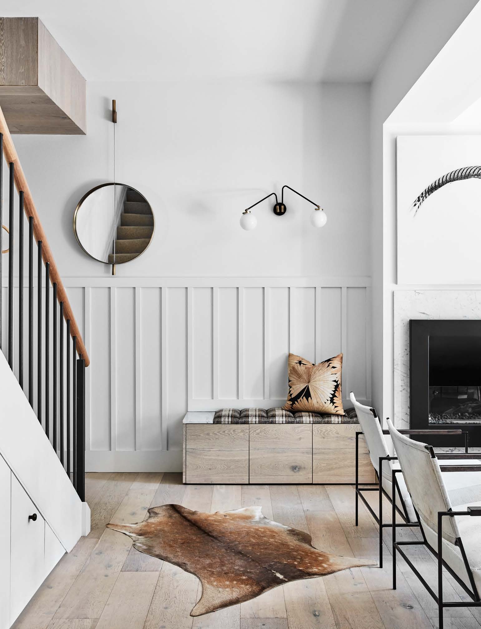 In this Sydney home, designed by Studio Kate, joinery turns under-stair space into storage and a timber chest does double-duty as seating.