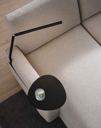 - Integrated lighting in sofas and beds is cord-free and saves space.
