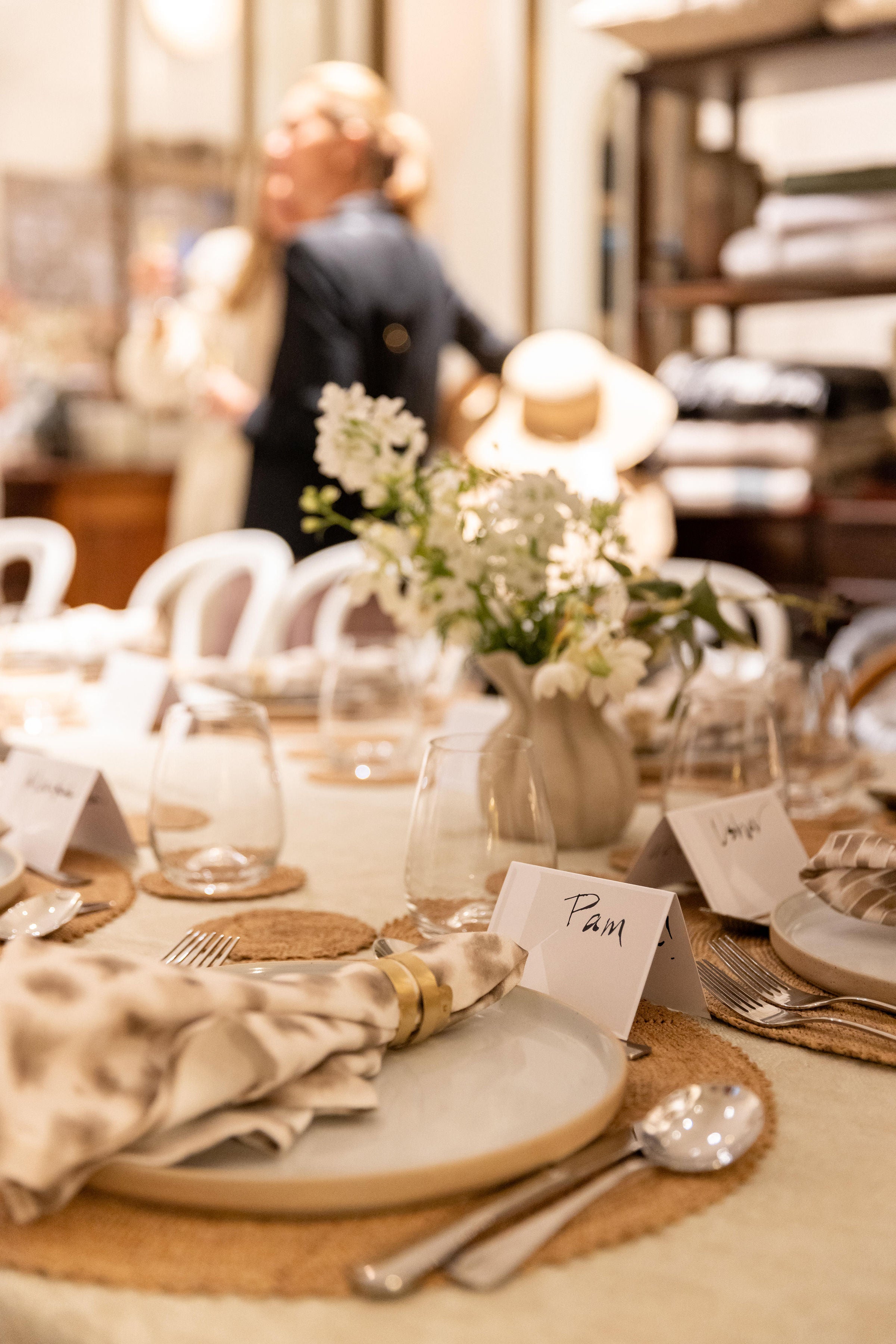 We recently hosted a beautiful Style & Dine evening instore with creative force Lucy Tweed. Guests enjoyed Lucy’s new spring menu paired with Usher Tinkler Wines at a tablescape styled by Kate with custom KATE NIXON for Quercus & Co napkins.