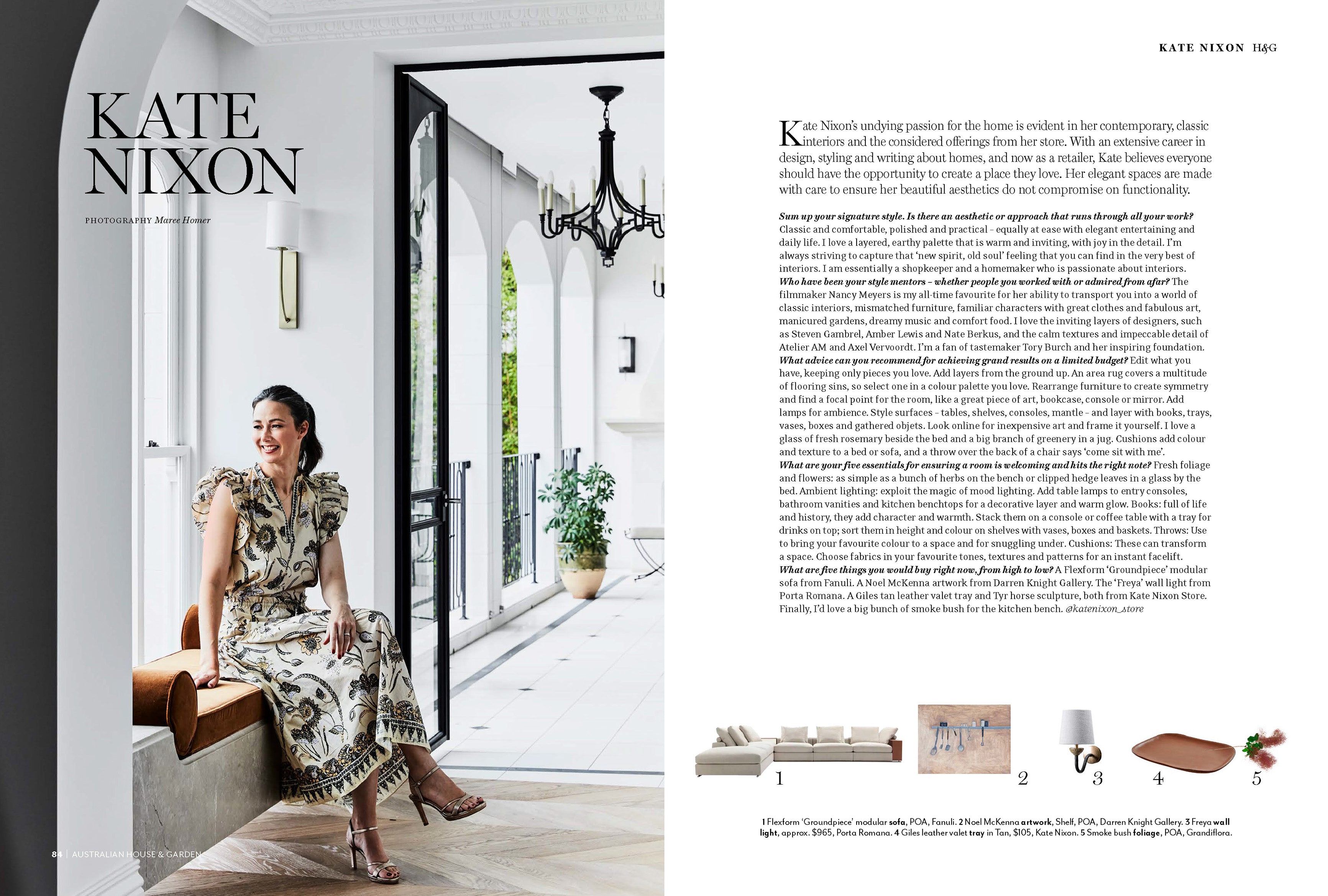 Kate Nixon is an Australian designer, stylist and long-standing interiors editor of Australian House & Garden magazine.