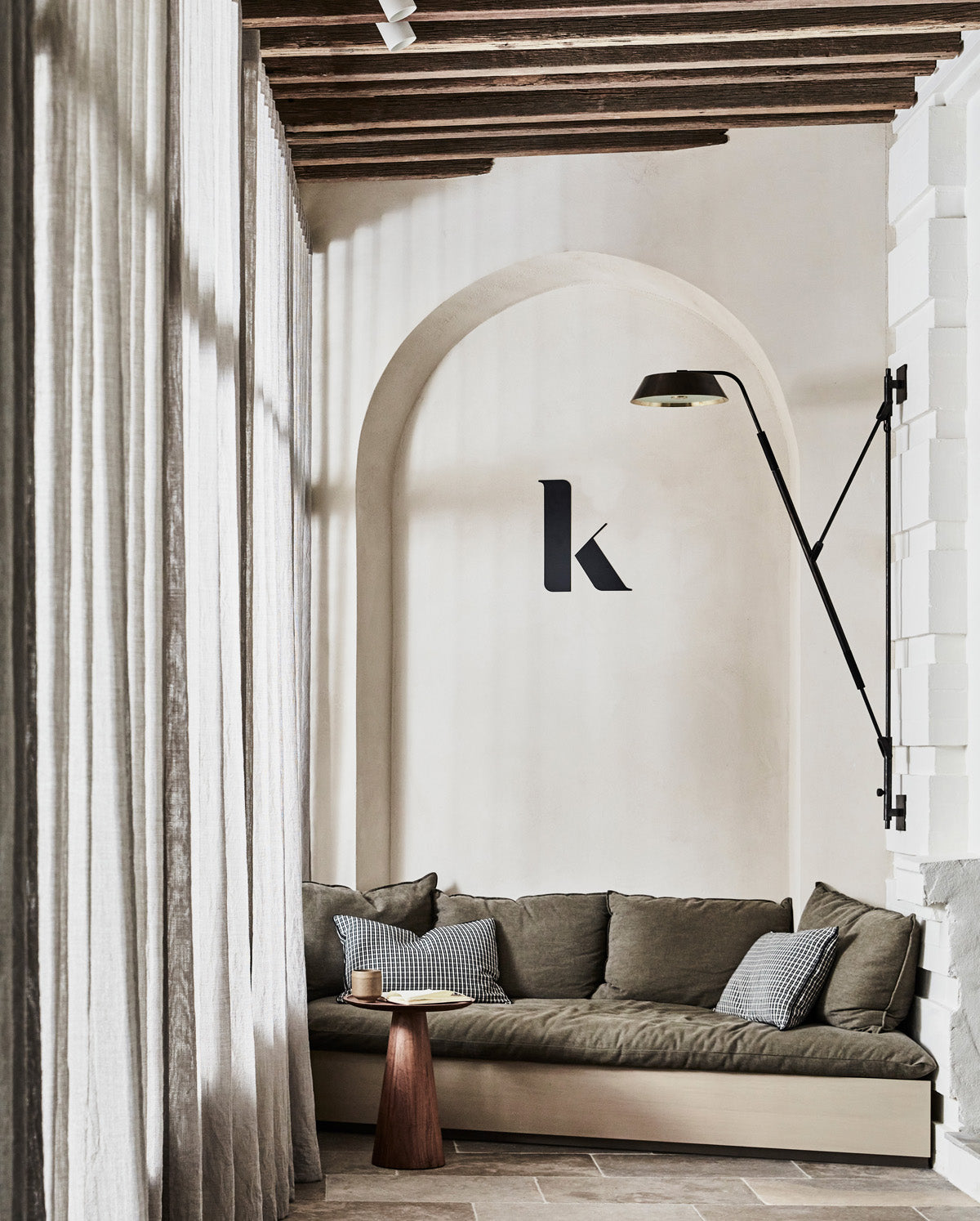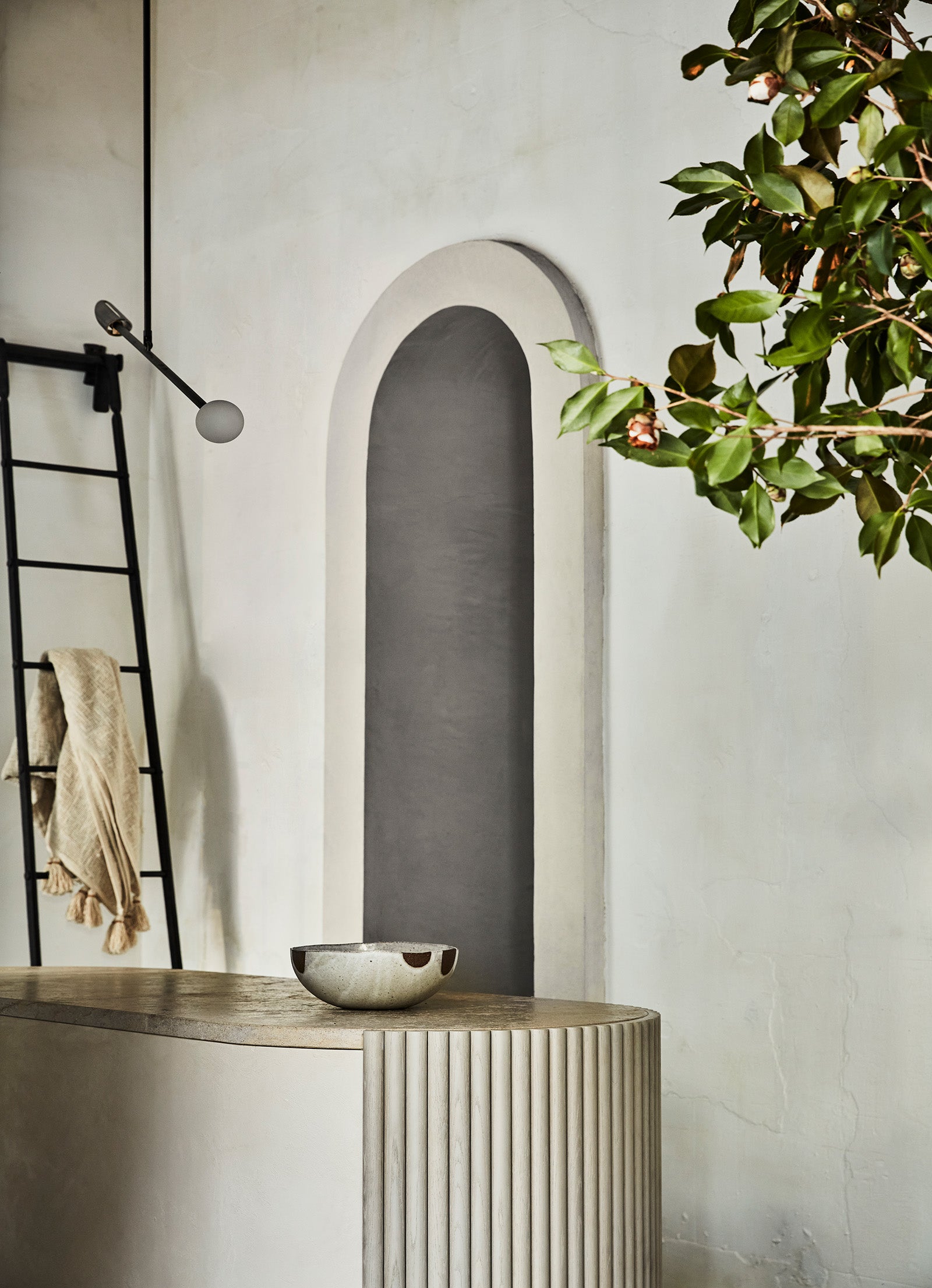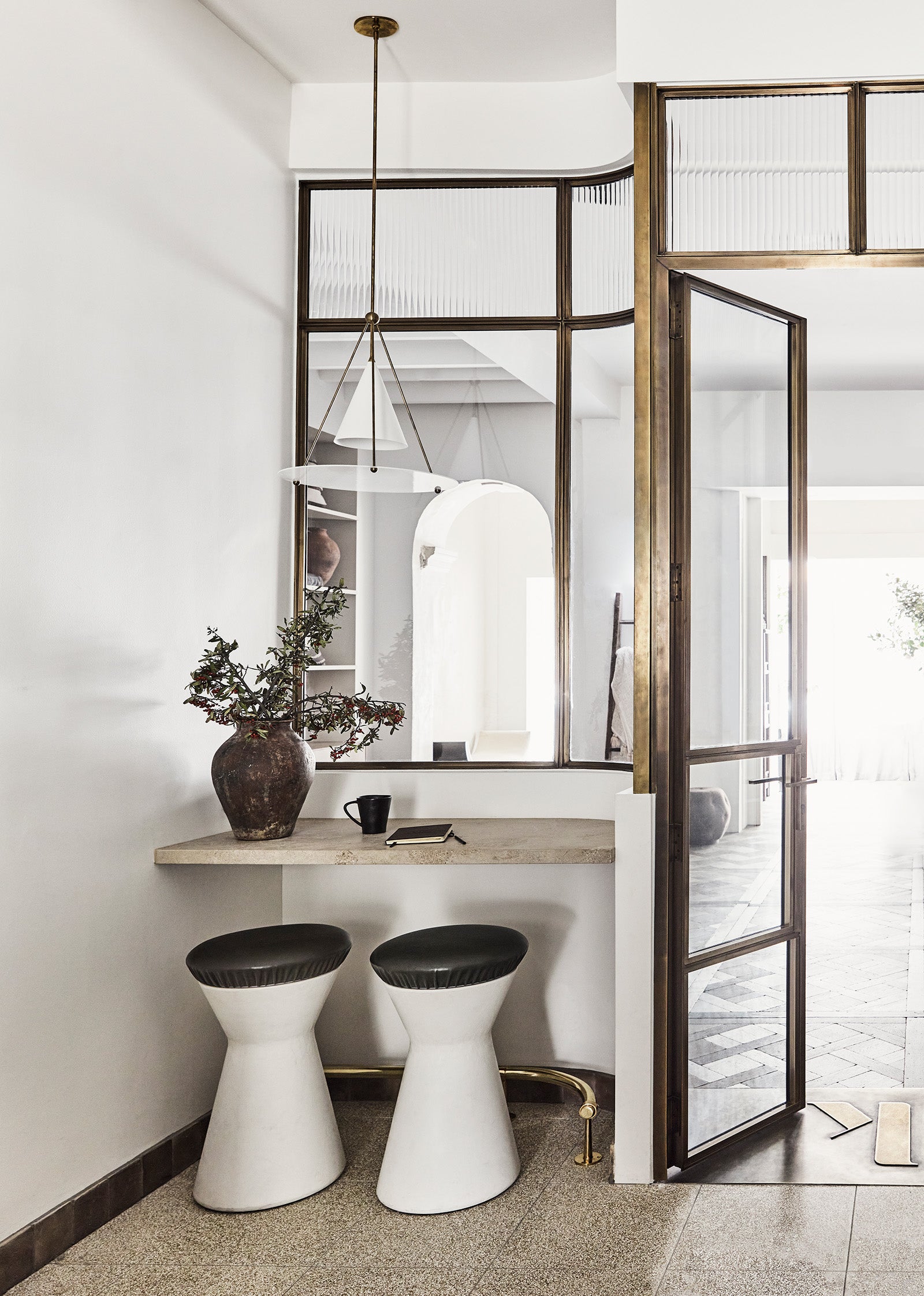 We discovered carved archways, brick fireplaces, four metre ceilings and bevelled walls. We sought calm and authenticity with layered textures of natural materials and modern, custom fixtures and fittings working with artisans in Australia and overseas to craft hand forged iron, burnished brass, turned timber and fluted glass.