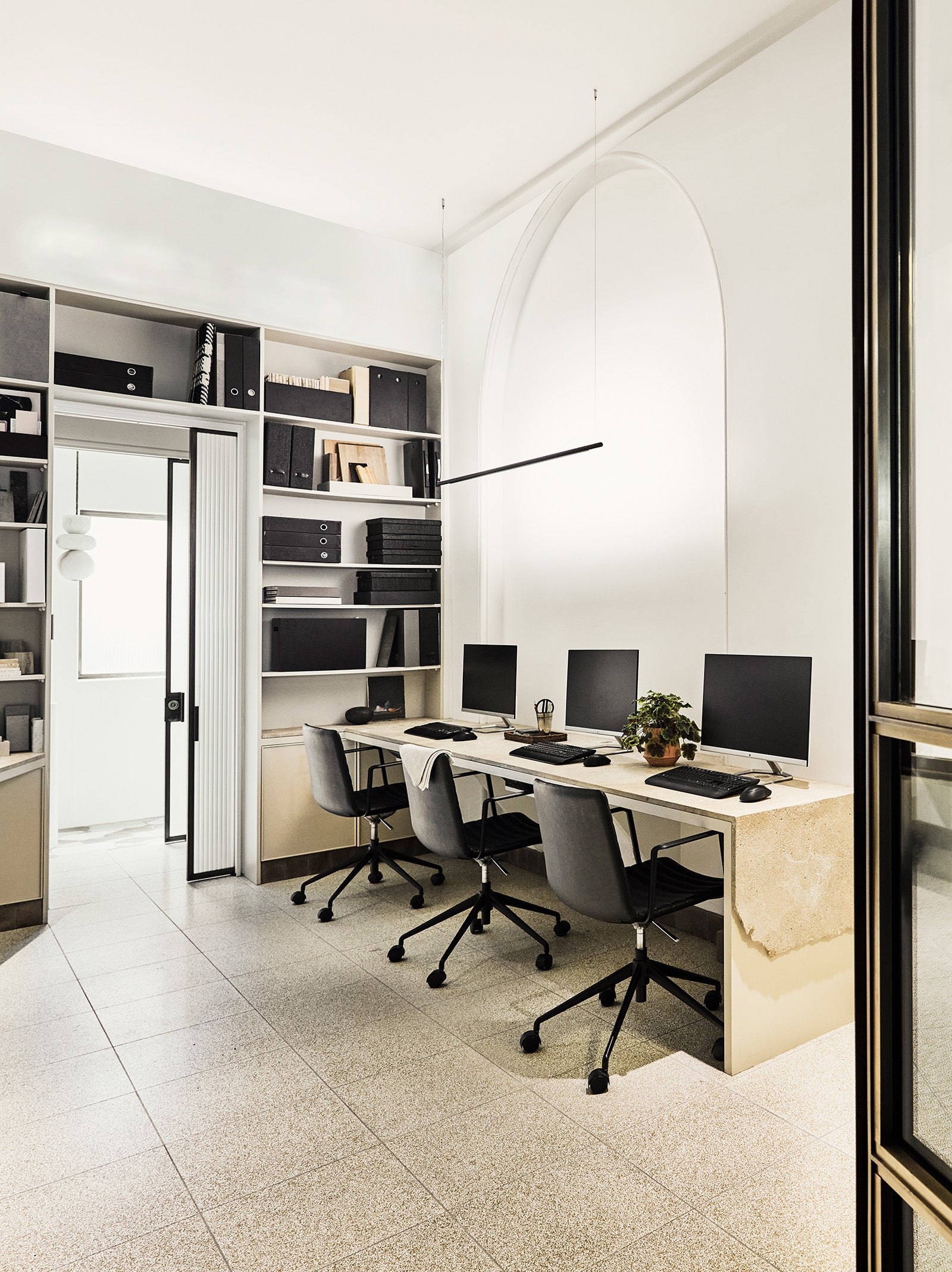 Through the process of restoring and renovating this 1800’s space (a gym in it’s most recent incarnation) we sought to strip back and lay bare the original architectural elements and celebrate them within a contemporary context.