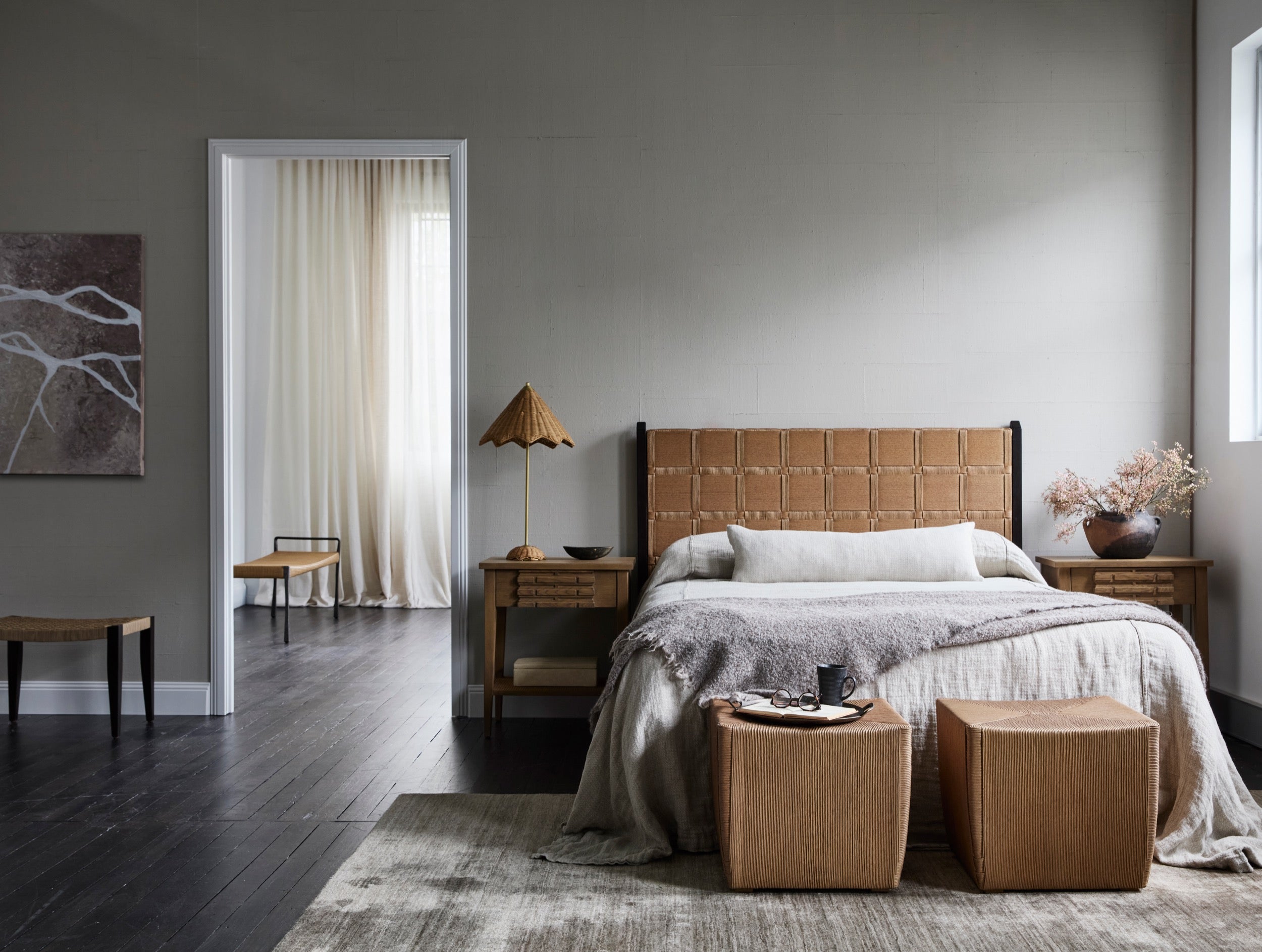 Everett presents a handsome combination of hand-woven Danish paper cord and solid oak framing. Available in Queen and King size with a split batten wall cleat, this striking centrepiece can be softened with a padded fabric cushion looped to the timber side posts. Versatile and uniquely captivating.