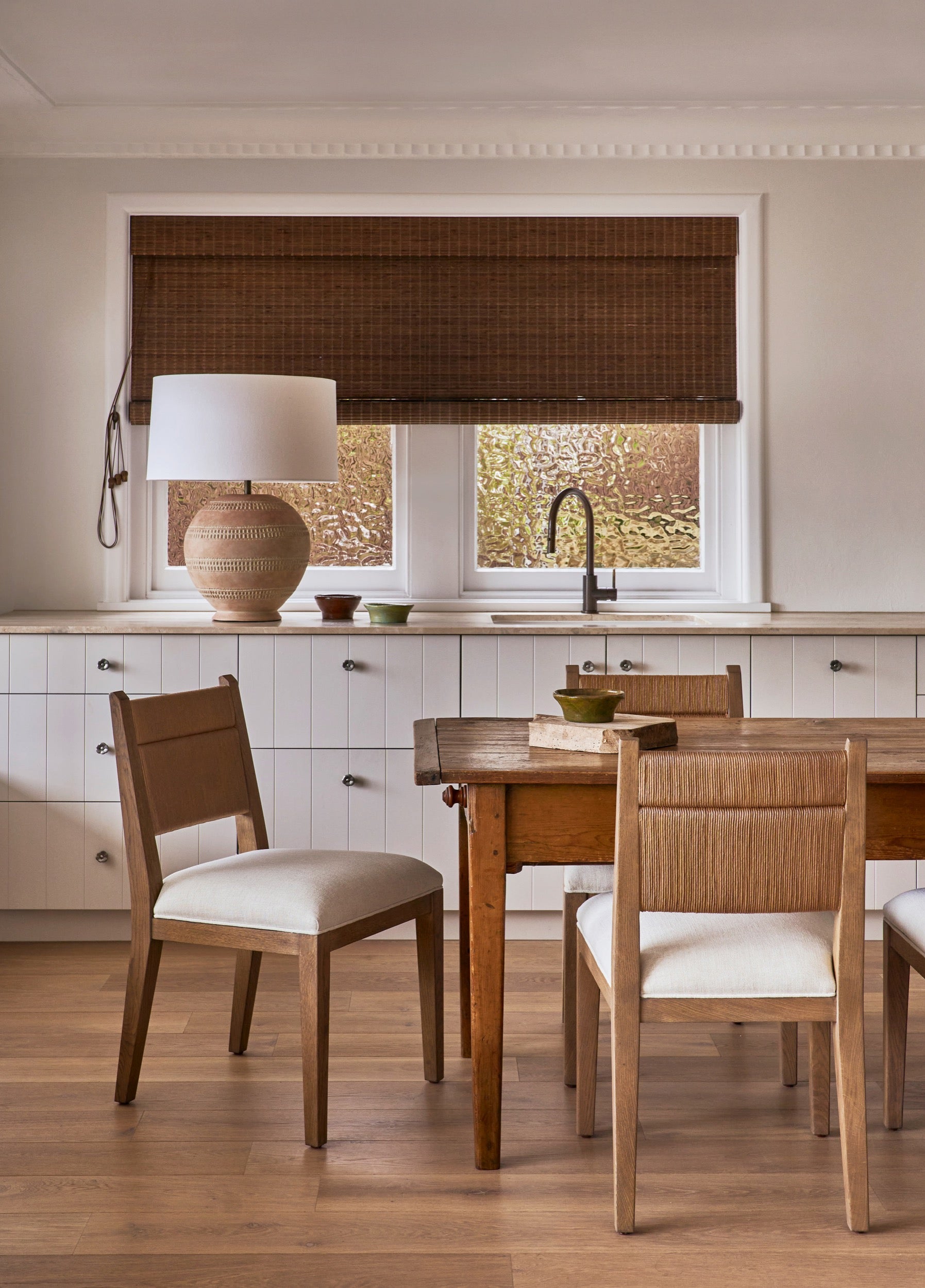individual dining chairs at a long kitchen table. Effortless in its simplicity, character and charm.