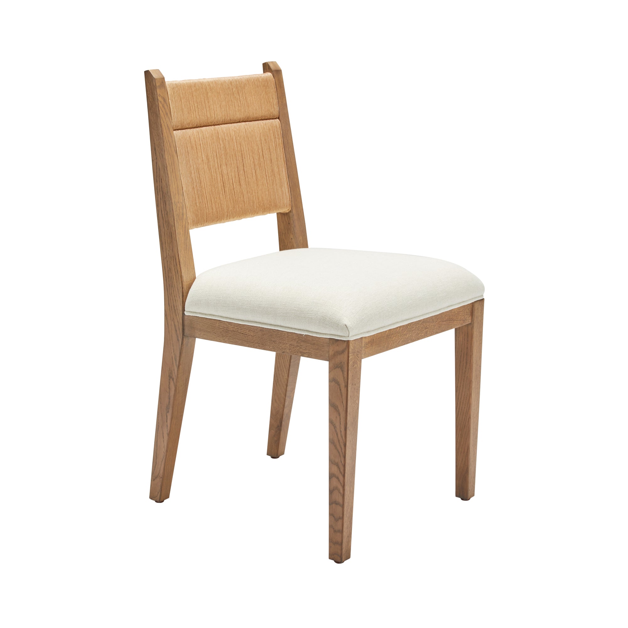 Bromely reflects a confident, structured character that is both fresh and familiar. The solid mahogany base and stained oak frame pairs an elegant, tapered profile with comfortable seat upholstery and a handwoven Danish paper cord back rest, further softened with a padded fabric lumbar cushion looped to the timber side posts.